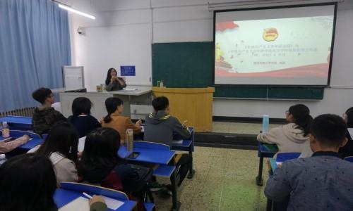 团课开始,杨晨老师先对《中国共产主义青年团章程》和《中国共产主义青年团普通高等学校基层组织工作条例(试行)》的主要内容进行详细讲解,并明确了团员应履行的义务和享有的权利。随后,杨老师又对“三会两制一课”的内容进行介绍,通过列举相关事例帮助大家更加深入理解其内容。最后,对《中华人民共和国宪法修正案》的精神实质和主要内容进行了讲解,激励同学们树立理想信念,志存高远,勇敢肩负起时代赋予的重任,同时,杨老师要求各班班委举办相关活动,让更多同学了解宪法。
