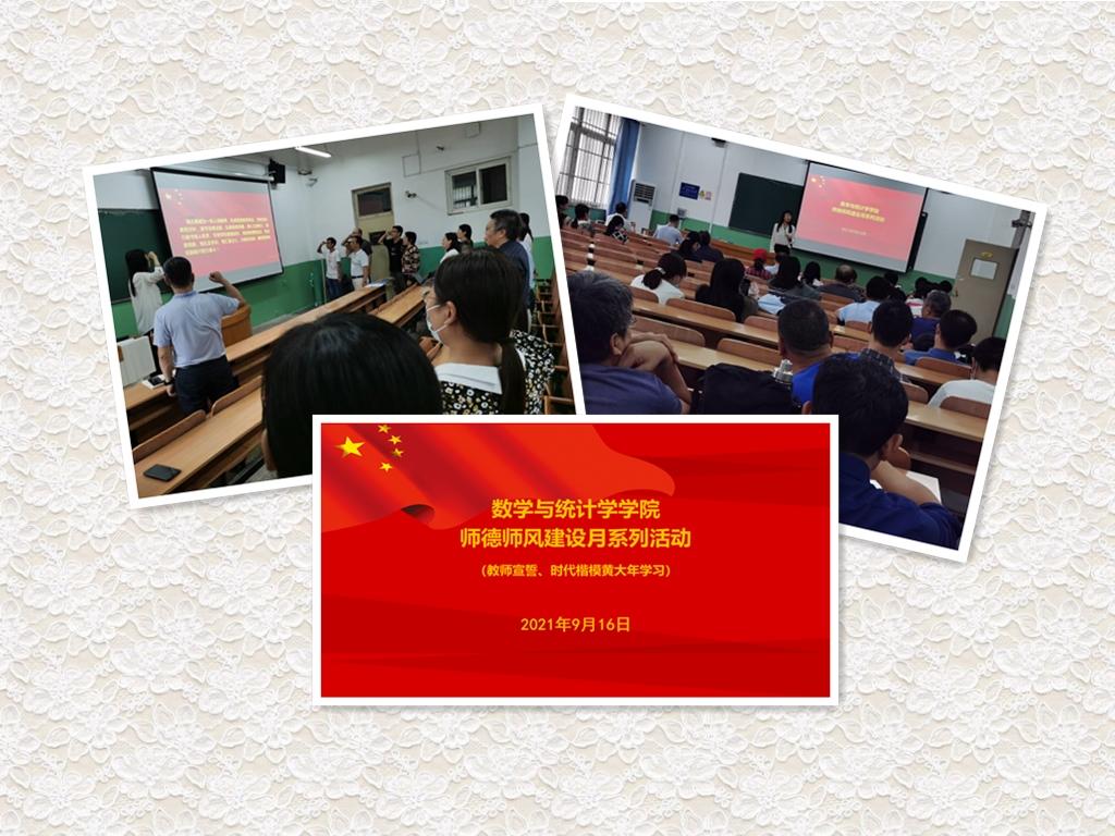 9月16日下午,数学与统计学学院党委组织全体教工在一教107室开展了新教工入职宣誓及时代楷模黄大年集体观影学习活动,这是学院“师德师风建设月”系列活动之一,活动由学院党委书记祃海霞主持。