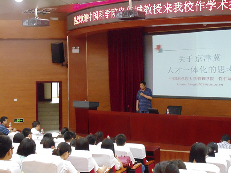 国际学术报告厅作了“关于京津冀人才一体化的思考”为题的报告。副校长武义青主持报告会,数学与统计学学院、京津冀一体化发展协同创新中心200余名师生听取了报告。