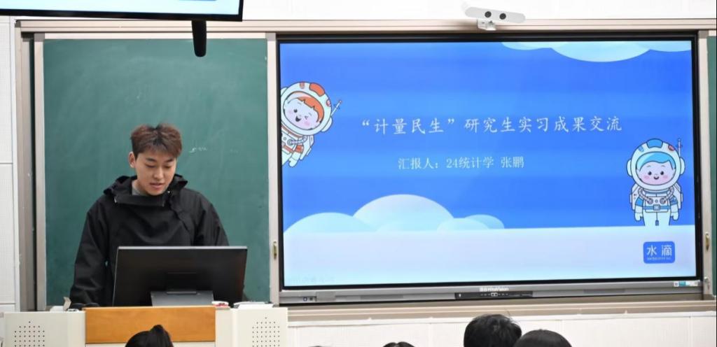 在第一板块,曾于河北省统计局、水滴科技等单位实习的同学依次登台,围绕岗位能力需求、日常实操细节、参与项目要点等展开陈述,辅以典型案例与成长感悟。他们一致提到,将课堂所学迁移至数据采集、清洗、建模及报告撰写全链条,既需要严谨的数据思维,也离不开高效沟通与团队协作。