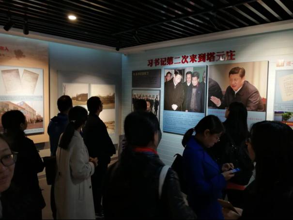 大家随着讲解员的解说,一步步走进塔元庄村史馆,一步步走近并了解塔元庄。塔元庄是一个具有北方特色、平凡却不普通的乡村,在时代的大潮中,它历经了百世沧桑,从一个贫穷落后、满是泥泞的小乡村,蜕变成一个高楼林立,风景优美的宜居地。塔元庄的华丽转身是中国美丽乡村建设的一个缩影,更是党和国家领导人全面建成小康社会、建成富强、民主、文明、和谐的社会主义文明强国的完美展现。习近平总书记在正定工作期间,经常骑着自行车走村入户下访考察,当他第一次来到塔元庄,就与这里的村民建立了深厚的感情,并结下不解之缘,如今村里的老人依旧对他当年下乡的情景津津乐道。习近平总书记先后三次莅临塔元庄,三十多年间,塔元庄发生了翻天覆地的变化,人民的生活品质发生了质的飞跃。它承载了人民对美好生活的梦想,体现了人民艰苦奋斗,用双手创造美好明天的不懈精神。为了让这份精神传承下去,为了让后世的子子孙孙都能感受到中国的发展带来的变化,铭记党恩,传承奋斗、创新的精神,塔元庄特建立了村史馆,供村民及游人参观学习。