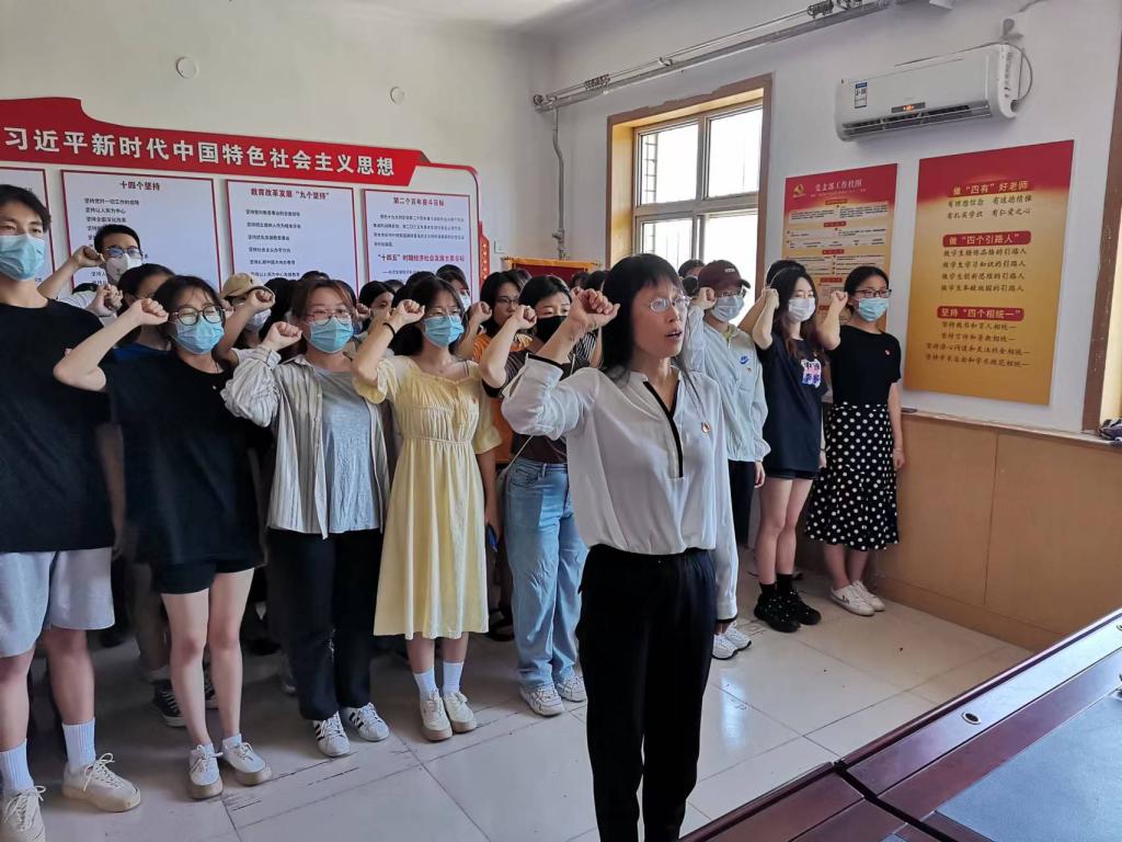 入党宣誓是党员入党的必备手续,也是对党员进行党的教育的有效方法。在学院党委书记祃海霞领誓下,全体新党员举起右拳面向党旗庄严宣誓,发出了为党的事业奋斗终身的诤诤誓言。