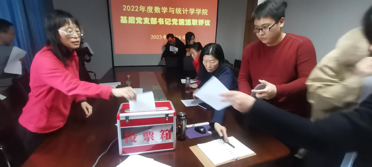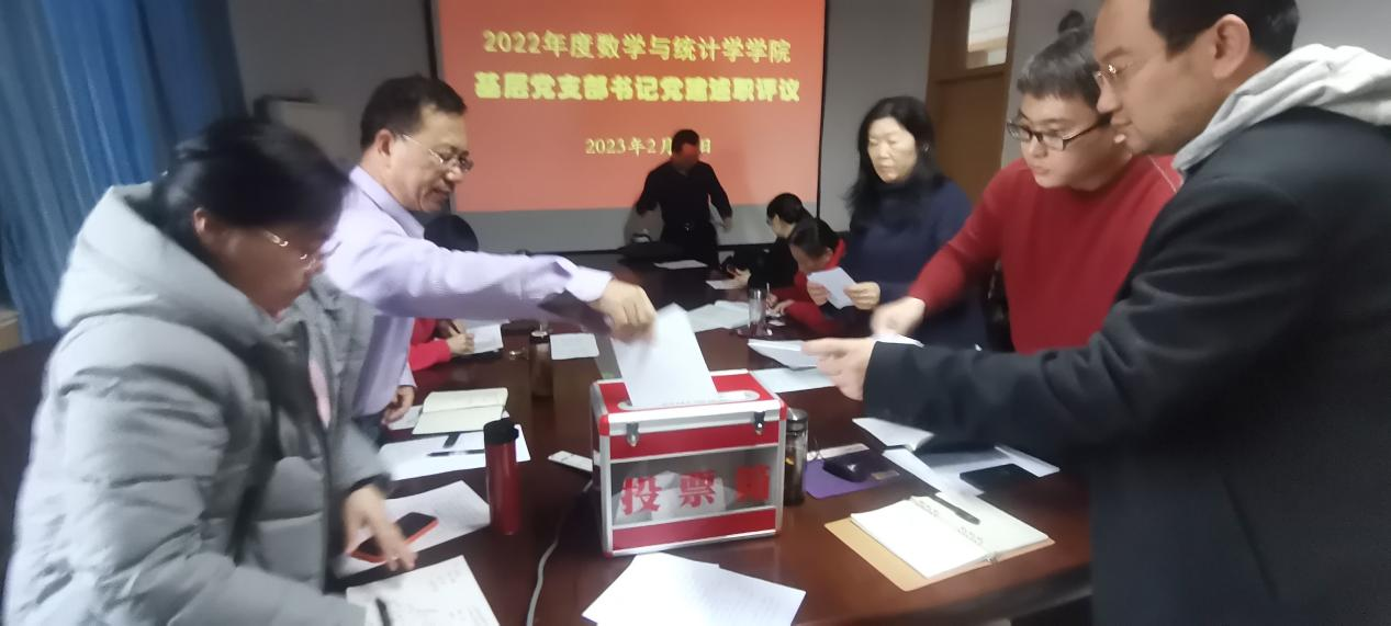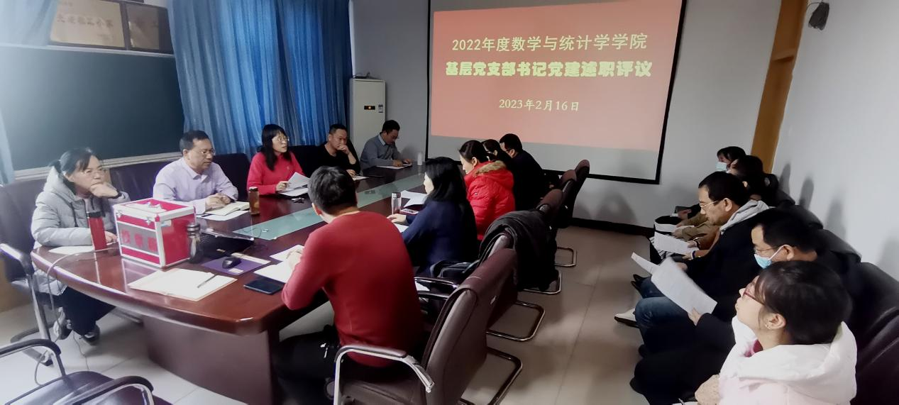 2023年2月16日下午,数学与统计学学院开展了2022年度党支部书记党建述职评议活动。活动由学院党委书记祃海霞主持,全体党委委员和党支部书记参加。