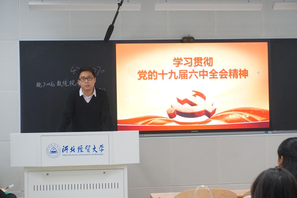 11月17日晚7点,数学与统计学学院于北三教B305开展主题团课,学习贯彻党的十九届六中全会精神。活动由团委书记王洋老师主持,团委成员和全体团支书参加。