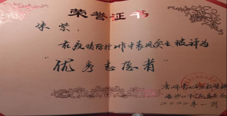 疫情就是冲锋号,防控就是责任。疫情防控是一场保卫人民群众生命安全和身体健康的严峻斗争,数学与统计学学院的学生志愿者分布在全国各地,在2021年12月-2022年2月,集结在新冠肺炎疫情联防联控的第一线,用青春与汗水守护家园,朱紫同学就是这些最可爱的志愿者当中的一员。