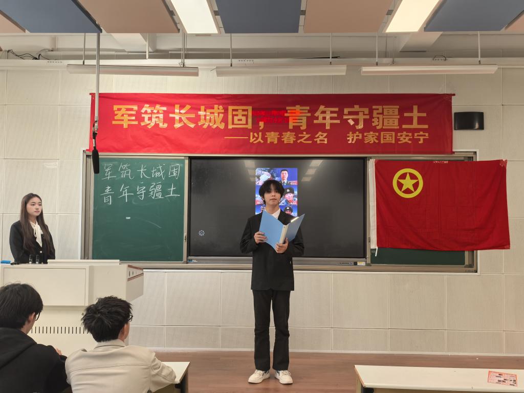 24统计2班在北三教A107开展“军筑长城固,青年守疆土”国防安全教育主题团日活动。