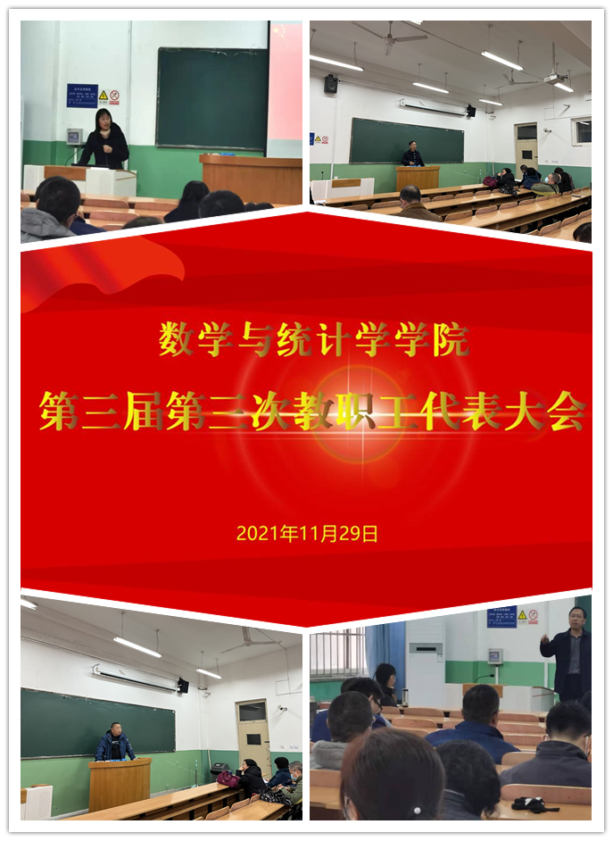 11月29日下午,数学与统计学学院召开了第三届第三次教职工代表大会,学院领导班子成员及全体教职工参加,会议由学院工会主席李志波老师主持。