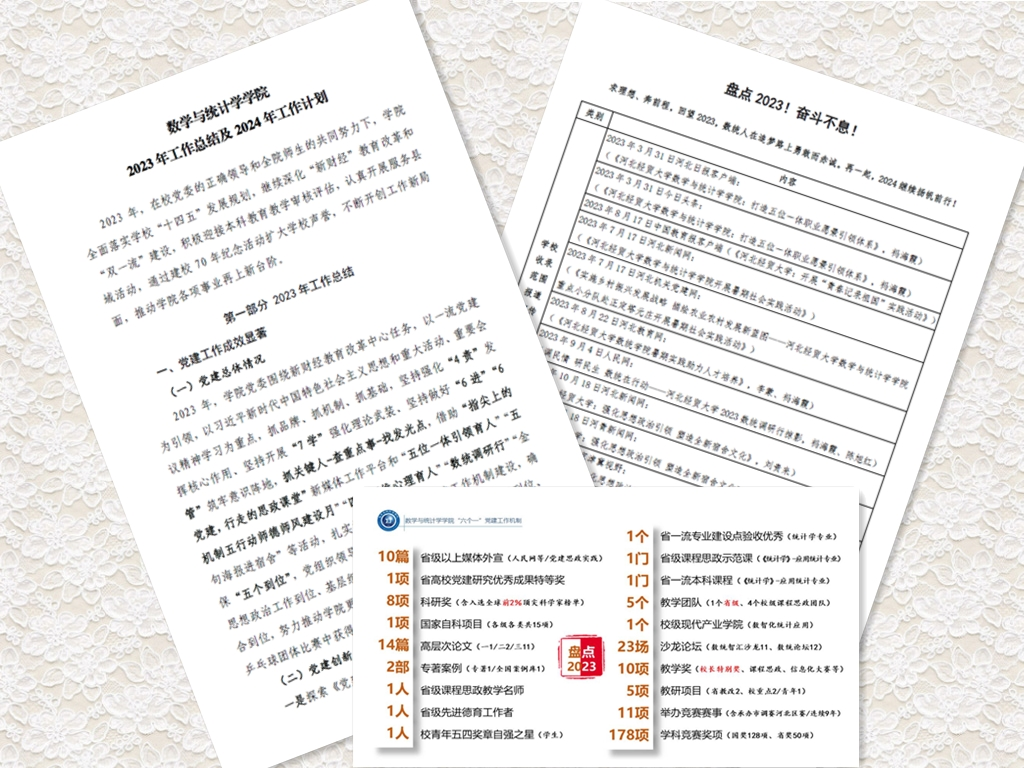 会上,祃海霞对学院一年来在一流党建、教育教学、学术科研、学科建设、研究生教育、学生工作等方面的工作进行全面总结盘点,同时提出2024年工作目标和工作思路。祃海霞代表学院党委向各位老师的辛苦付出表示感谢,强调指出学院的发展离不开每一位老师的努力,号召全体教职工团结一心,继续坚持以习近平新时代中国特色社会主义思想为指导,坚持党的教育方针,坚持落实立德树人根本任务,充分发挥每个人的积极性和创造力,为学院的科学决策、民主决策提供依据,共同推动学院各项工作取得新进展,为学校发展、为经济强省美丽河北建设贡献数统智慧和力量。