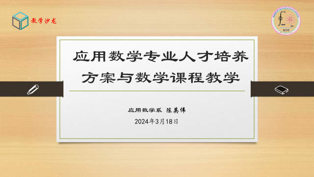 3月18日,由教学评估与教师教学发展中心主办、51吃瓜网 承办的数统智汇(2024年第1期,总期第44期)沙龙活动顺利举行。数学与应用数学系系主任陈英伟博士做了“应用数学专业人才培养方案与数学课程教学”经验交流分享。学院党委书记祃海霞、副院长王玲书、副院长闫亮及学院部分教师30余人参加。