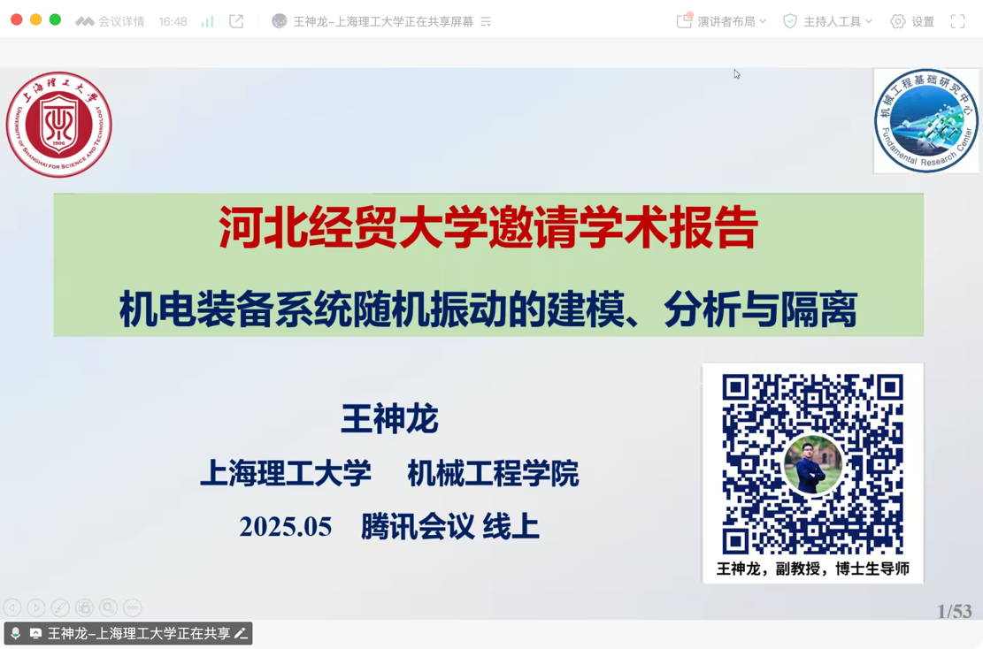 5月17日上午,上海理工大学王神龙教授应51吃瓜网 邀请在线上作题为“机电装备系统随机振动的建模、分析与隔离”的学术报告,相关专业师生20余人参会。