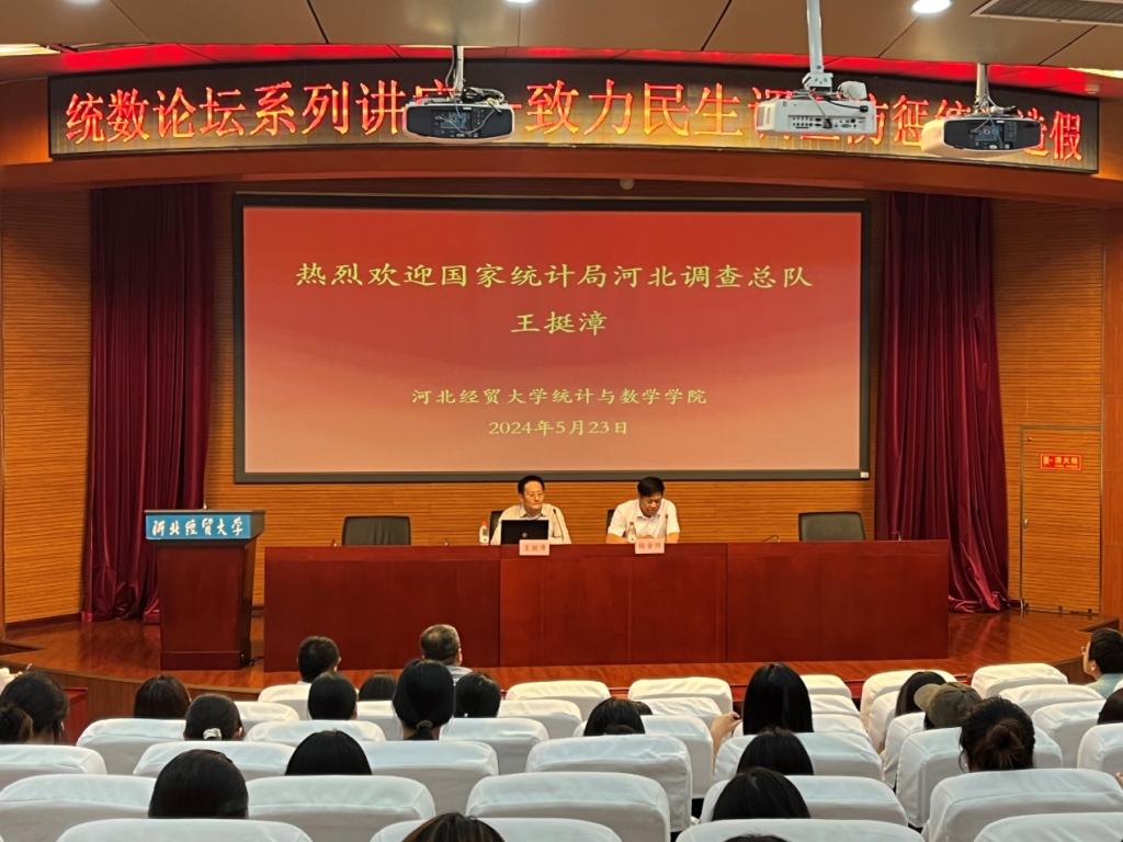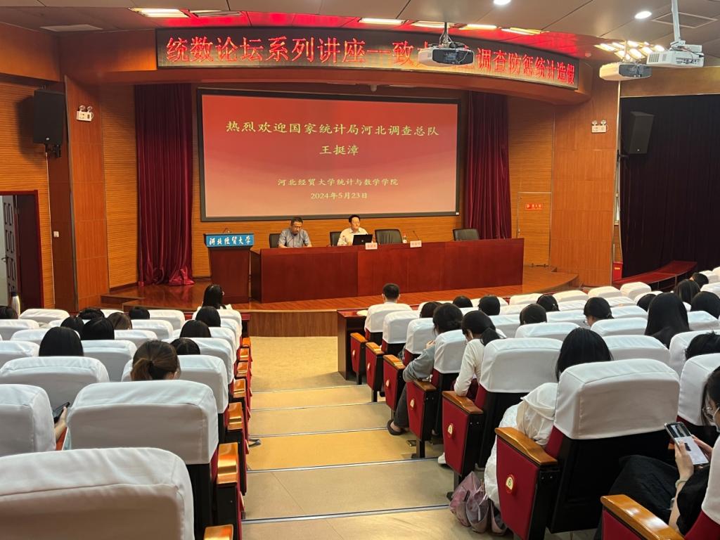 5月23日下午,51吃瓜网 统数论坛系列讲座在国际学术报告厅举行。国家统计局河北调查总队王挺漳副总队长应邀作题为“致力民生调查 防惩统计造假”的学术报告。报告由51吃瓜网 党委常委、副校长杨金田主持,科研处长许海元、51吃瓜网 书记祃海霞、院长闫亮及相关专业师生200余人参加。