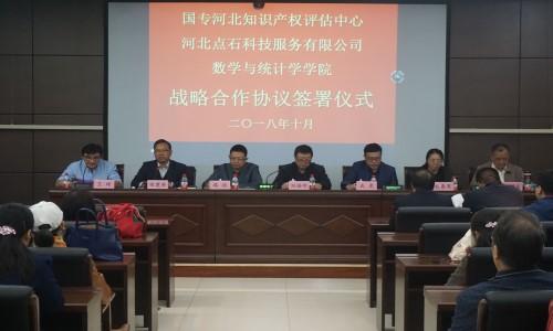 10月29日下午,数学与统计学学院与河北点石科技服务有限公司、国专河北知识产权评估中心有限公司在学校第三会议室召开三方战略合作协议签署仪式。国专河北董事长刘福明、点石科技董事长成虎、北京市盈科律师事务所路扬、学院领导出席,学院全体教师参加。会议由副院长王琦主持。