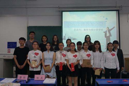 5月28日,数学与统计学学院在北三教b102举办职业生涯规划大赛。学院团委书记杨晨,学生会主席团担任评委,16、17级部分学生代表参加此次比赛。