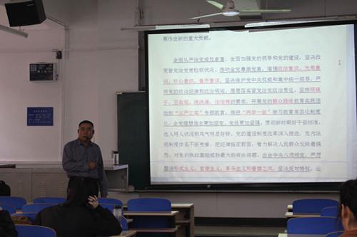 11月6日下午,数学与统计学学院在B101教室组织第43期党课暨十九大精神宣讲主题班会,全院本期党员发展对象、入党积极分子和2014级全体学生共200余人参加。