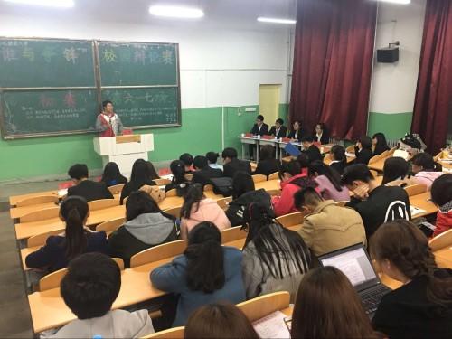 2017年“谁与争锋”大学生辩论赛初赛在北一阶教室举行。比赛由学校学生会组织,共有16支代表队参加,200余名学生现场观看了比赛。