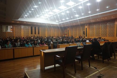 会议中心学术报告厅作了题为《对学习数学的认识和建议》的学术报告,学院200余名师生聆听报告。报告会由学院院长赵秀恒教授主持。