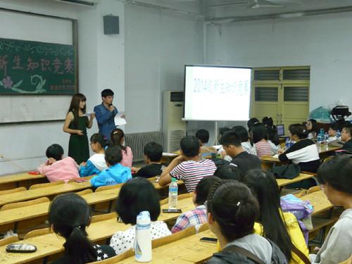 第五阶梯教室座无虚席,掌声雷动,数统学院在此举办了以“欢乐数统 激情竞赛”为主题的新生知识竞赛。