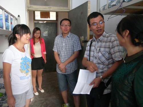 党总支副书记赵春果,2013级辅导员周广军、张浩老师以及院学生会主席陈静等人深入新生宿舍,看望2013级新同学。