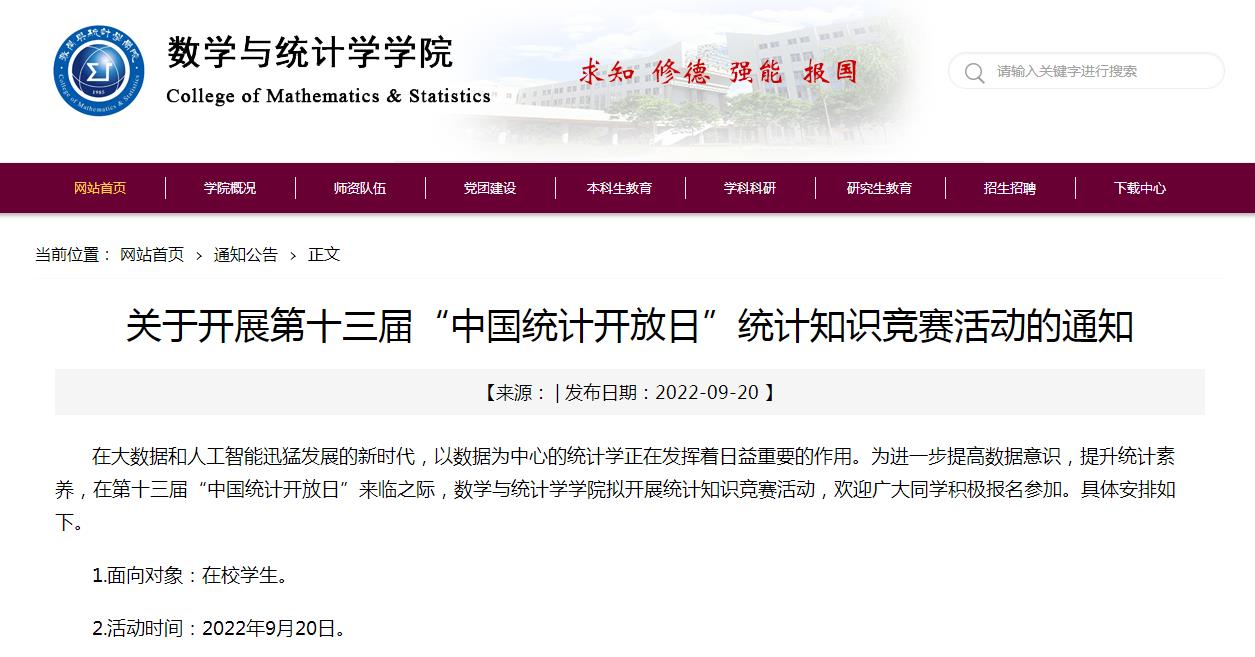 2022年9月20日,第十三届中国统计日来临之际,学院开展了系列活动。
