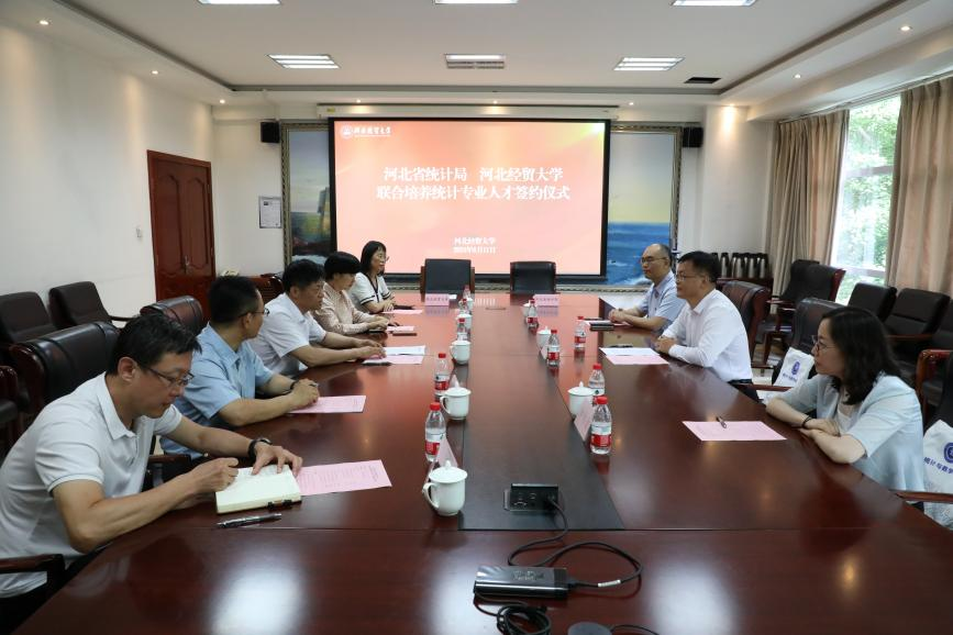 双方就统计专业人才培养、产学研平台搭建等展开深入交流,希望以此次签约为契机实现资源共享、优势互补、合作共赢,在科学研究、人才培养、大学生社会实践基地等领域进行全面合作,为河北省统计等相关工作提供有力保障。此次合作是双方立足新征程、坚持智慧引领、强化责任担当、共同推进统计学领域创新的重要举措,也是紧跟形势、服务地方经济的重要手段,有利于双方进一步巩固合作关系,发挥各自优势,积极探索“统计专业人才培养”合作新途径。