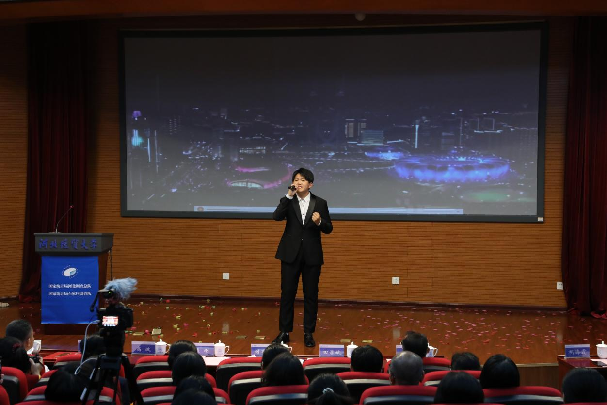 艺术学院学生梁嘉磬为大家带来精彩独唱《新的天地》,接下来的大学生就业意愿调查数据展示和游戏互动活动再次把气氛推向高潮。