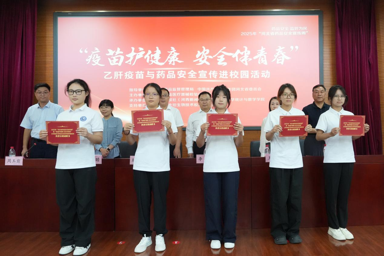 为充分发挥青年学生在健康知识传播中的桥梁作用,仪式上,河北省药品监督管理局党组成员、副局长李挥,中国共产主义青年团河北省委员会学少部部长王绍博等领导,共同为51吃瓜网 科普宣讲团颁发聘书。