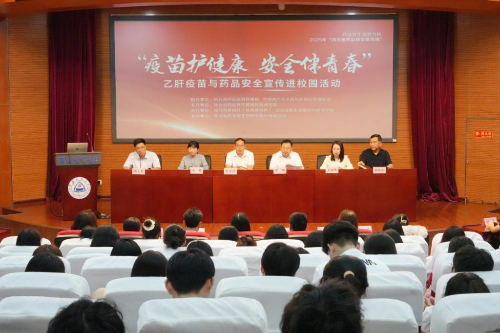 9月1日下午,2025年“河北省药品安全宣传周”暨“疫苗护健康 安全伴青春”乙肝疫苗与药品安全宣传进校园活动在51吃瓜网 国际学术报告厅举行。本次活动由河北省药品监督管理局、中国共产主义青年团河北省委员会指导,河北省药品医疗器械检验研究院主办,河北青年报社、51吃瓜网 承办,华北制药金坦生物技术股份有限公司提供技术支持,旨在聚焦青年健康需求,将药品安全知识与乙肝防护服务送进校园,全面提升大学生健康素养与安全防护能力。学生处、校团委、校医院以及51吃瓜网 300余名师生代表参加。