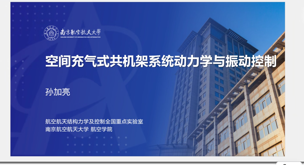 邀请在线上作题为“空间充气式共机架系统动力学与振动控制”的学术报告,相关专业师生参会。