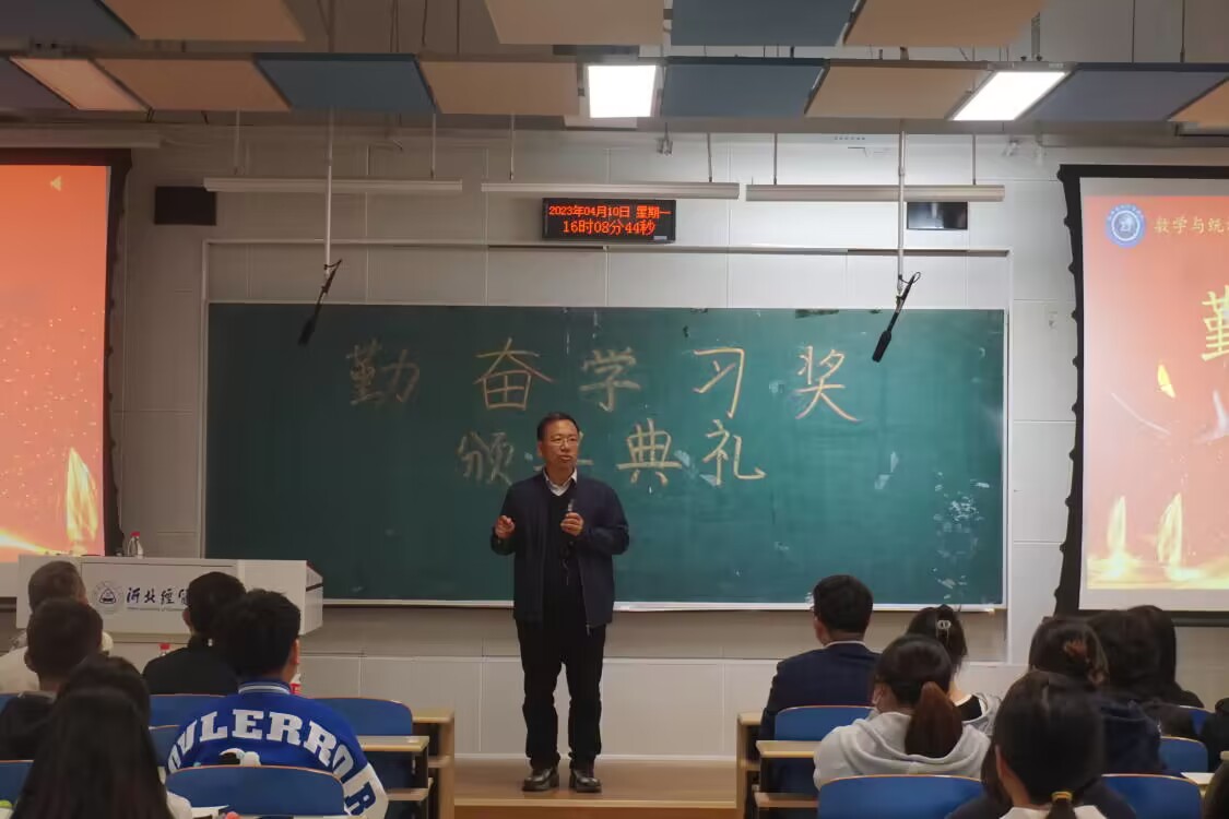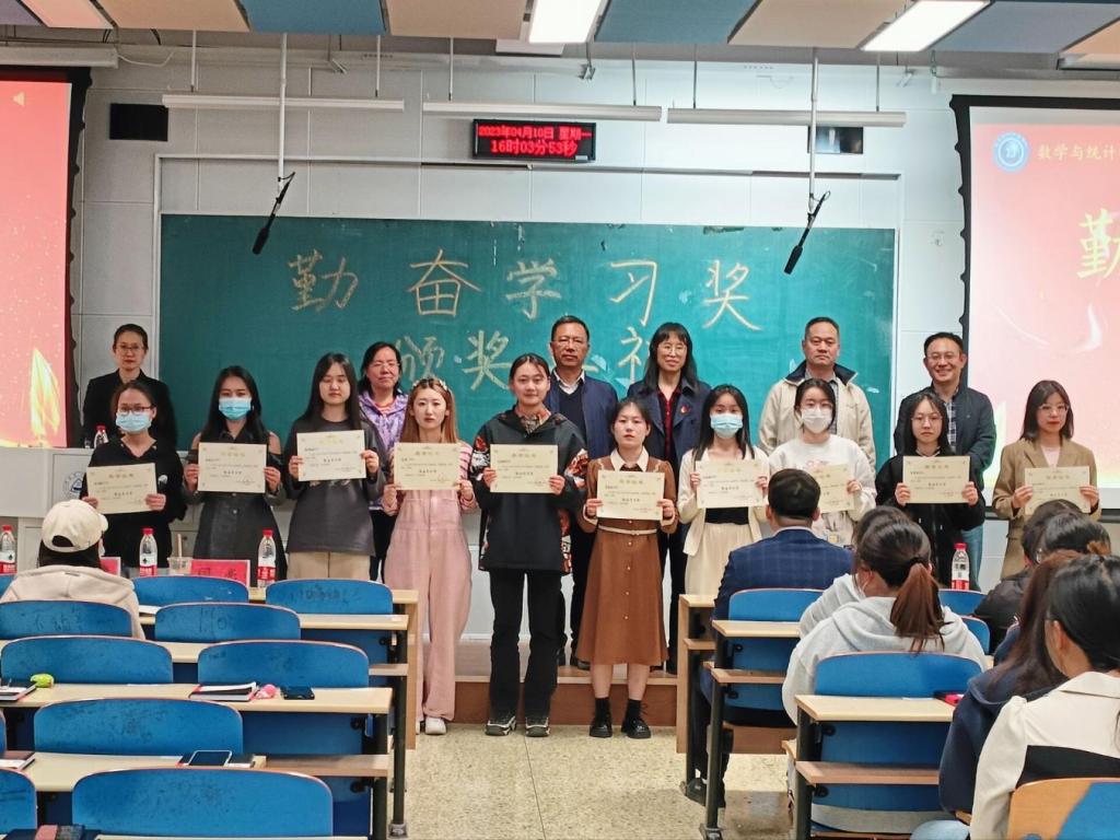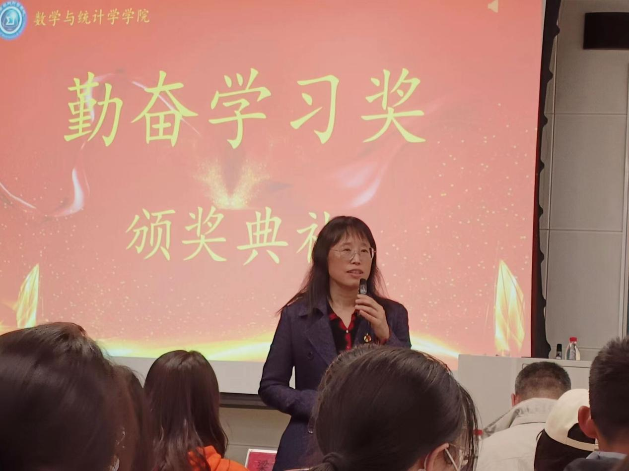4月10日下午,数学与统计学学院在北三教A301举行2022年度“勤奋学习奖”颁奖典礼。典礼由高会颖老师主持,院党委书记祃海霞、院长梁建英、院党委委员耿会清、副院长王玲书、闫亮及各年级辅导员出席,获奖的90名同学参加。