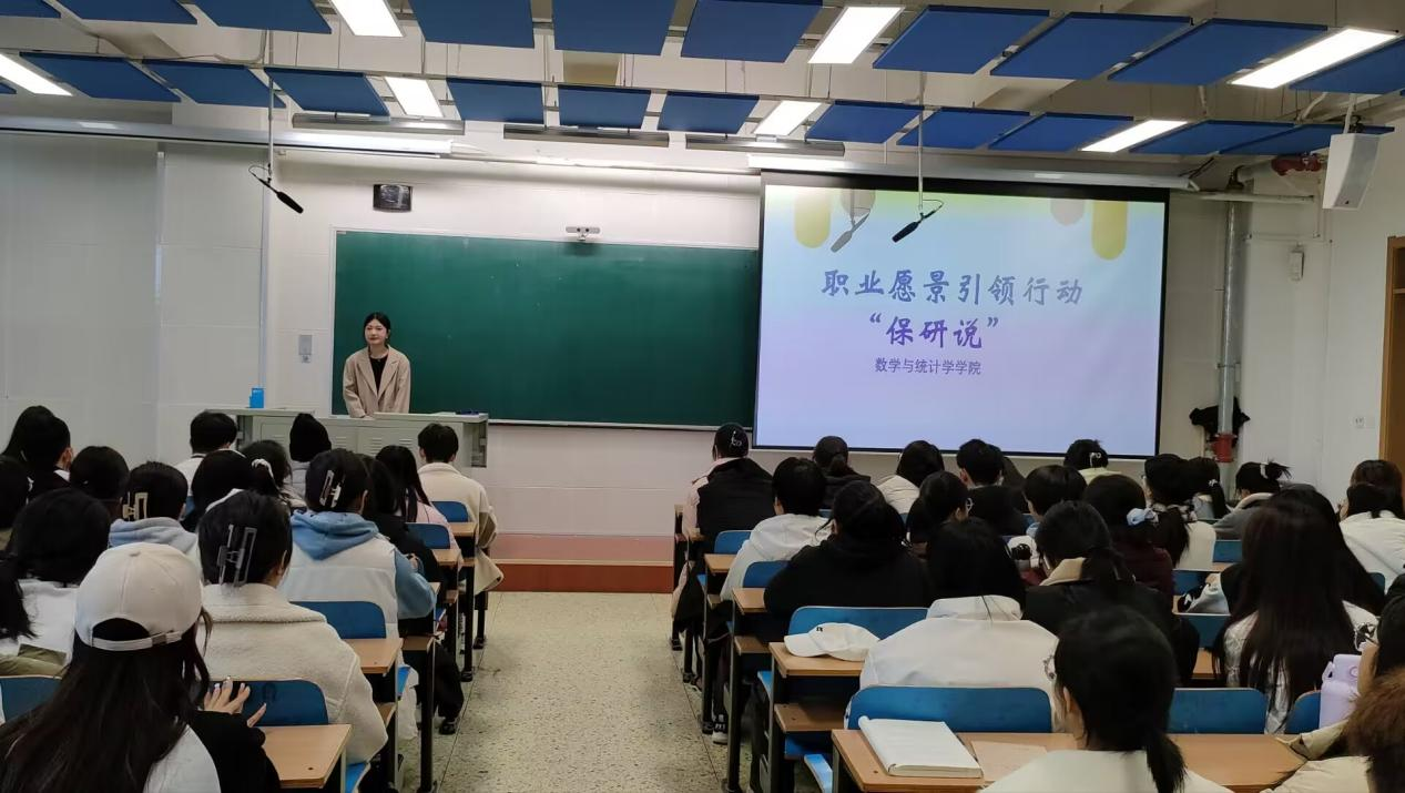 11月16日,数学与统计学学院于北三教C509举办职业愿景引领行动——“保研说”。学院邀请了4位2020级成功保研的学生,分享学习经历、科研、竞赛经验。2023级全体学生参加。