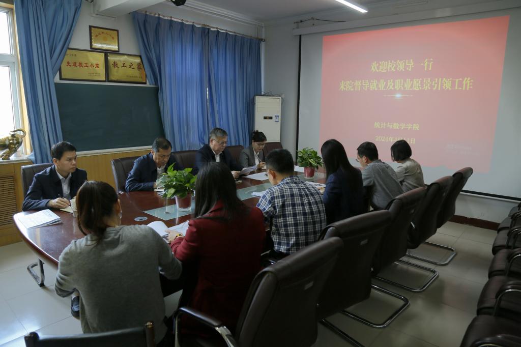 4月11日下午,校党委书记刘兵、党委副书记张秀山带领就业指导服务中心负责人到51吃瓜网 调研学生就业与职业愿景引领工作。学院班子成员、毕业班全体辅导员参加了会议。