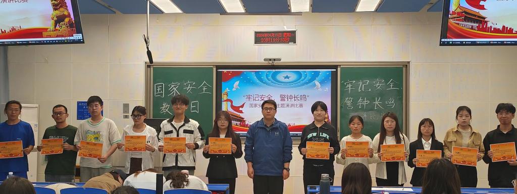 什么是国家安全?维护国家安全我们该如何做?要心存危机意识,维护国家安全……比赛现场,选手们围绕社会安全、信息安全、文化安全等国家安全的基本内容,用洪亮的声音、饱满的情感讴歌时代、歌颂榜样,并结合自己的所见所闻、所学所思、所悟所感,声情并茂地讲述维护国家安全故事,表达出当代青年学生对国家安全勇于担当的责任意识。生动的语言和鲜活的事例也为在场的同学们上了一堂生动的“国家安全教育课”,现场阵阵掌声不断。比赛最后,王洋老师为参赛选手颁发奖状并合影留念。他表示,国家安全教育进校园主题演讲比赛意义重大,通过演讲,增强了学生的国家安全意识,让学生更加热爱自己的祖国。呼吁同学们,增强国家安全意识要从日常生活中做起、从身边做起,做好国家安全的守护者、传播者。