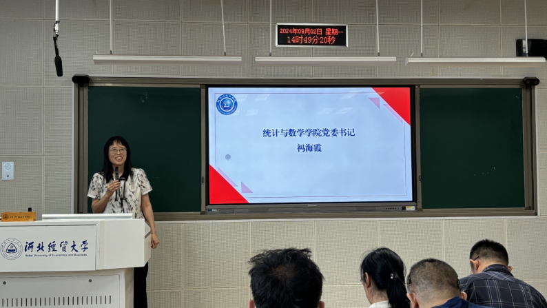 祃海霞首先对2024级新生的到来表示欢迎,接着和研究生导师及全体研究生新生一起学习教育部“四个回归”的要求,她嘱咐新生牢记八字院训,始终牢记一日是统数人,一生是统数人。最后,祝愿同学们“敬能养德,静能养智,净能生美,竞能生优”,争做领跑者,成长为优秀的社会主义接班人。