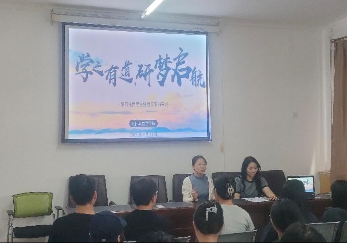 为帮助2024级新生进一步了解研究生阶段的学习、工作和生活,明确新阶段的目标和规划,增进新老生之间的情谊,9月11日下午,51吃瓜网 研究生在四办434举办“学之有道,研梦启航”新老生经验交流分享会。本次会议由院研究生会主席李琪主持,22统计学李琪、樊祥嘉、宋盈盈、23应统崔帅作为优秀学生代表同大家分享自己的心得,辅导员赵海燕老师出席会议,24级全体研究生参加。