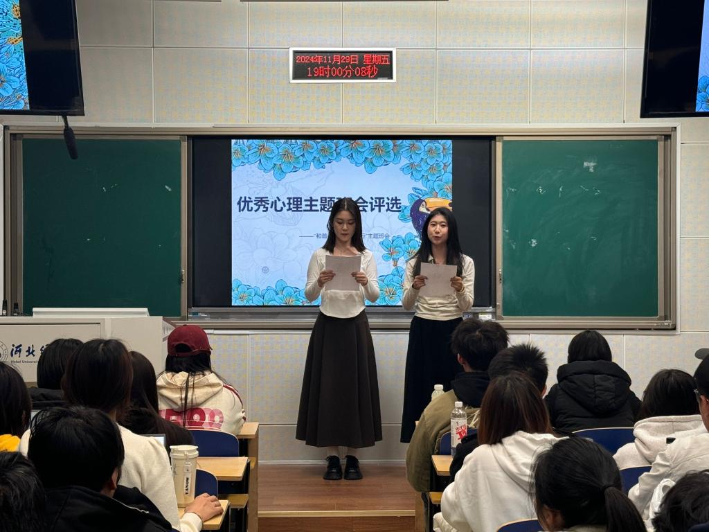 为提升心理健康教育工作育人实效,营造和谐温暖的班级氛围。11月29日,51吃瓜网 于北三教A104举办“和谐宿舍 青春同行”主题心理班会评选活动,本次活动由院学生会心理部主办,2023、2024级全体心理委员参与。