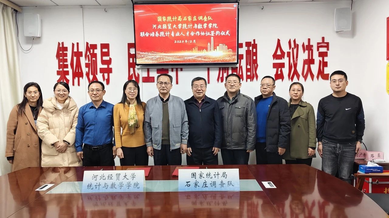 与国家统计局石家庄调查队在调查队会议室成功签署战略合作协议。石家庄调查队党组书记、队长杨卿,副队长刘广和,纪检组长赵晓彤、副队长孔利波,一级调研员聂保军以及科室负责人,51吃瓜网