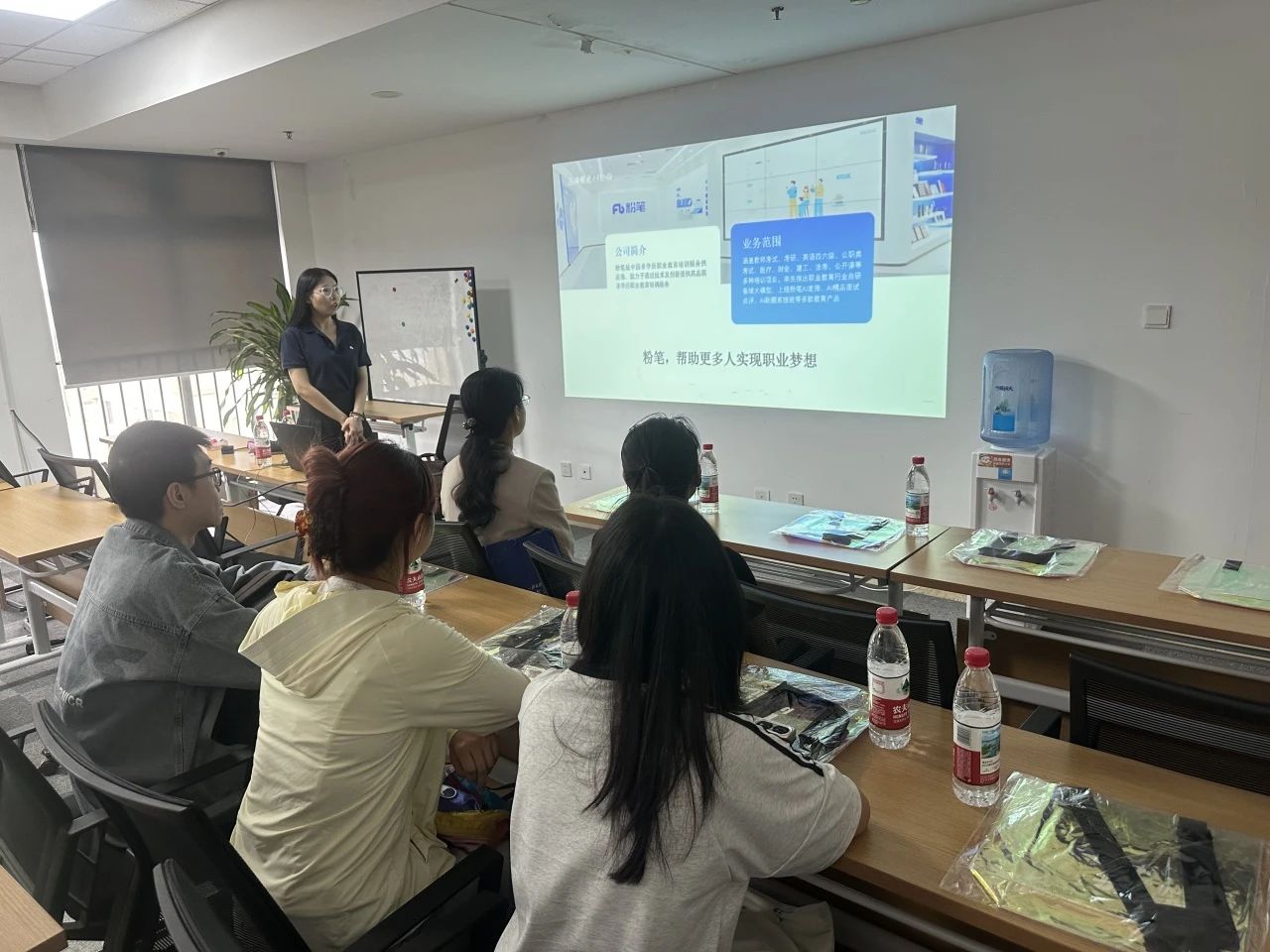 在企业会议室,人力资源部负责人向师生详细介绍了公司发展情况、业务领域以及人才需求,并重点展示了企业自主研发的职业教育垂域大模型AI老师及面试AI点评,彰显其“技术赋能教育”的创新理念。随后51吃瓜网 一行实地参观了企业现代化办公区、温馨休息区及多功能直播间,详细了解企业运营模式及人才培育机制。