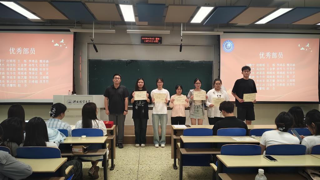 于北三教A101举行2024-2025学年学生会总结表彰大会。大会由团委组织部部长杨栩檬主持,院团委书记王洋老师出席并讲话,学生会全体成员参加。