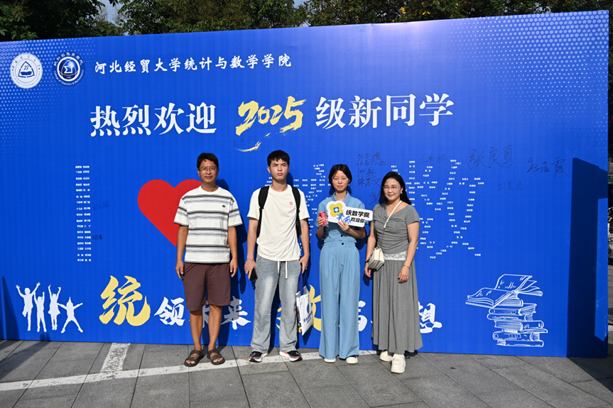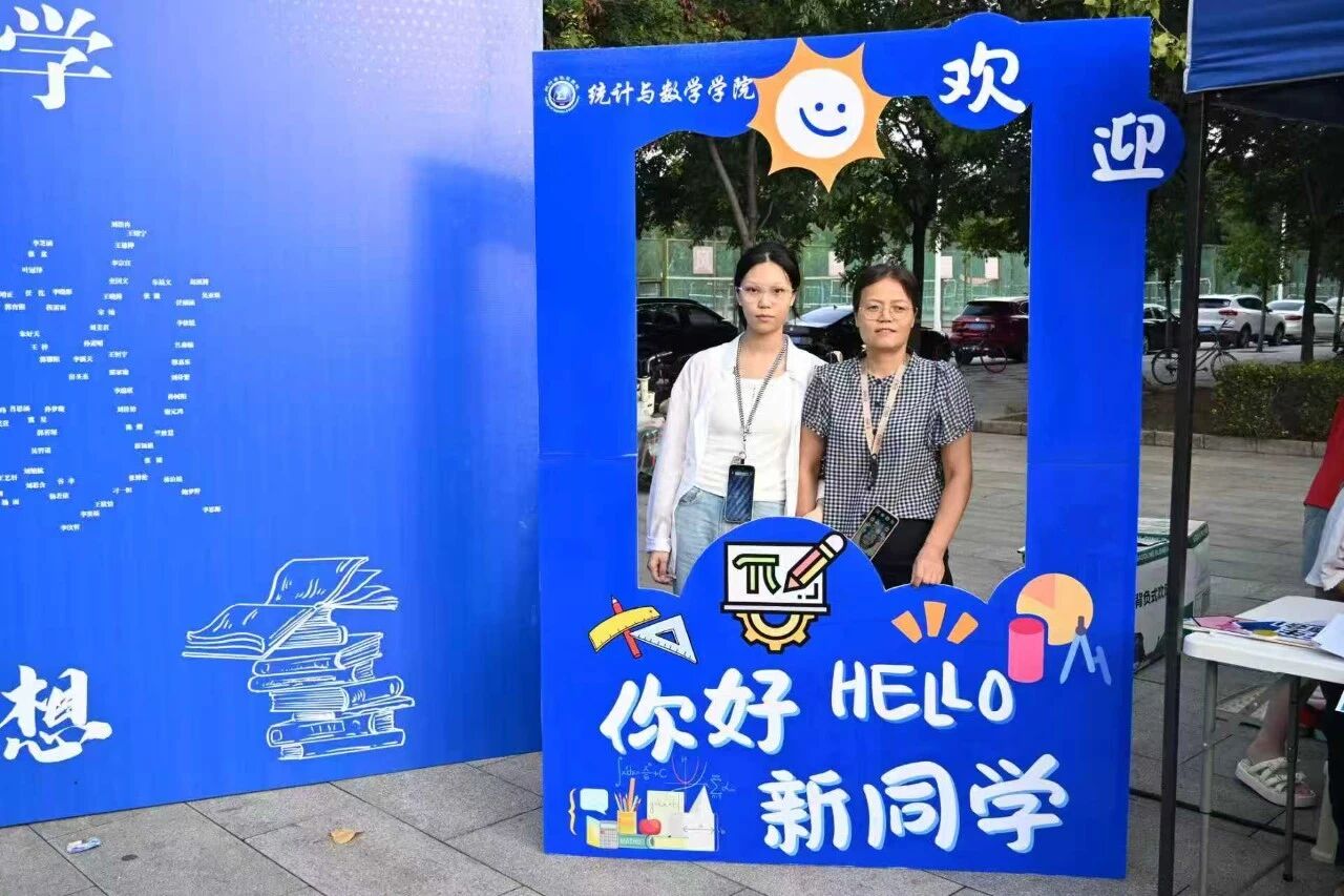 为让新生的入学体验更具仪式感与归属感,学院还精心设计了多项特色环节:专门制作的迎新背景墙前,新生们与亲友并肩合影,用镜头定格下大学生涯的第一张珍贵照片;由全体新生名字组成的“我爱统数”主题墙前,同学们纷纷驻足打卡,在找到自己名字的瞬间,深刻感受到“成为统数人”的归属感与幸福感。此外,学院还为每位新生准备了定制版可乐——瓶身印着新生专属名字与“学业有成”的美好祝福,将真挚期许融入饮品之中;同时贴心分发实用帆布包,为新生的校园生活提供便利,让每一份细节都承载着学院对新生的用心与关怀。