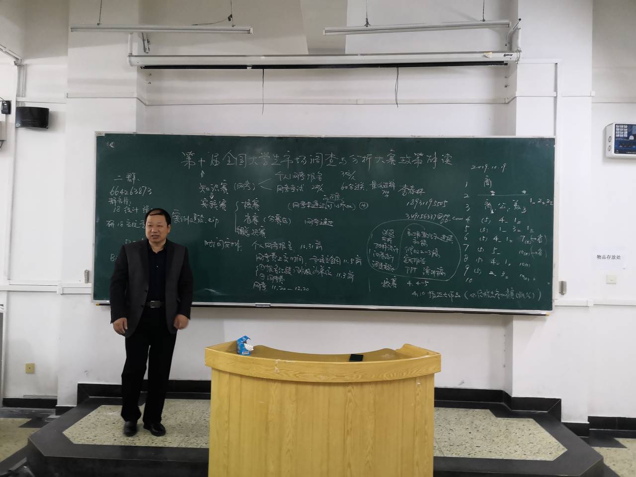 10月19日早8点,全国大学生市场调查与分析大赛政策解读讲座于北三教B101举办,数学与统计学学院原副院长李春林老师担任主讲,全体本科生、研究生参赛者参加。