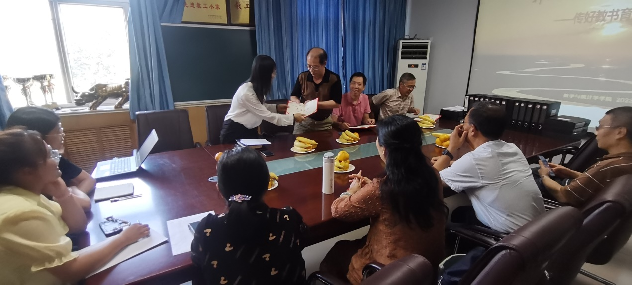 9月18日,由教学评估与教师教学发展中心主办、数学与统计学学院承办的数统智汇(第43期)沙龙活动顺利举行。学院党委书记祃海霞组织开展“薪火相传 躬耕教坛—传好教书育人接力棒”沙龙座谈。班子成员、党支部书记、系(教研室)主任、退休教师代表、近两年新入职教师共25人参加。
