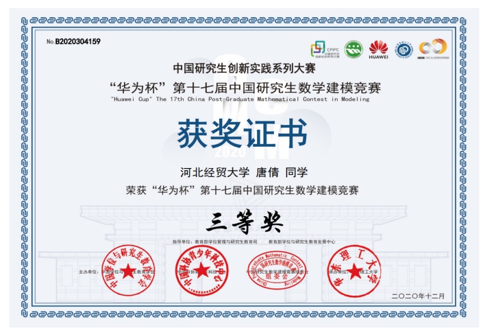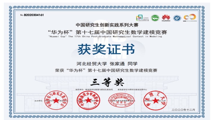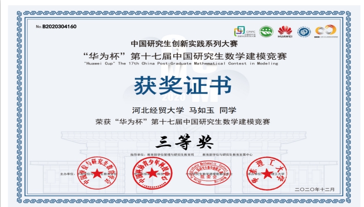 “华为杯”第十七届中国研究生数学建模竞赛评选结果揭晓,数学与统计学学院关菲老师指导的研究生团队喜获全国三等奖。