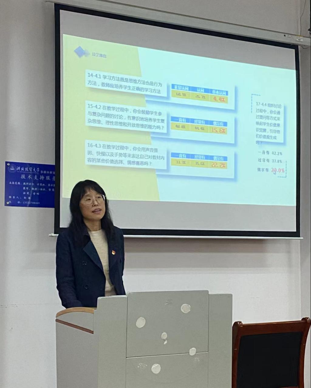 4月25日,由教学评估与教师教学发展中心主办、数学与统计学学院承办的数统智汇教学沙龙顺利举行。学院党委书记祃海霞教授做“基于调查数据谈谈对课程思政意识与能力建设的思考”交流分享。