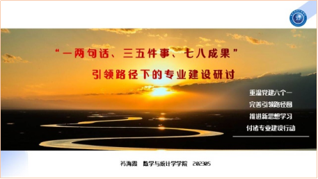 5月8日,由教学评估与教师教学发展中心主办、数学与统计学学院承办的数统智汇(第37期)教学沙龙顺利举行。学院党委书记祃海霞教授做“一两句话、三五件事、七八成果”引领路径下的专业建设交流分享。学院党委班子成员、各党支部书记和专业系(教研室)主任、副主任20余人参加。