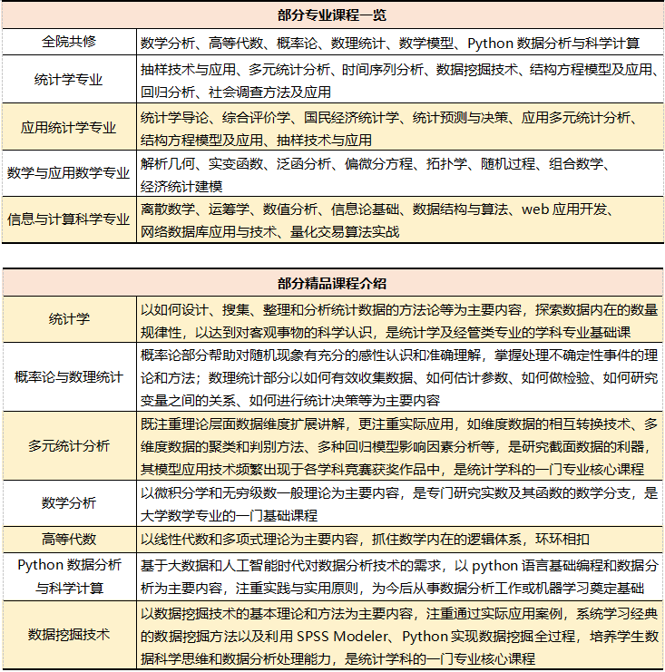 培养目标:培养具有传统统计思维和现代大数据统计分析素养,能在企事业单位和政府管理部门从事统计调查、数据处理与分析等工作,或在科研、教育部门从事研究和教学的高级数据分析人才。