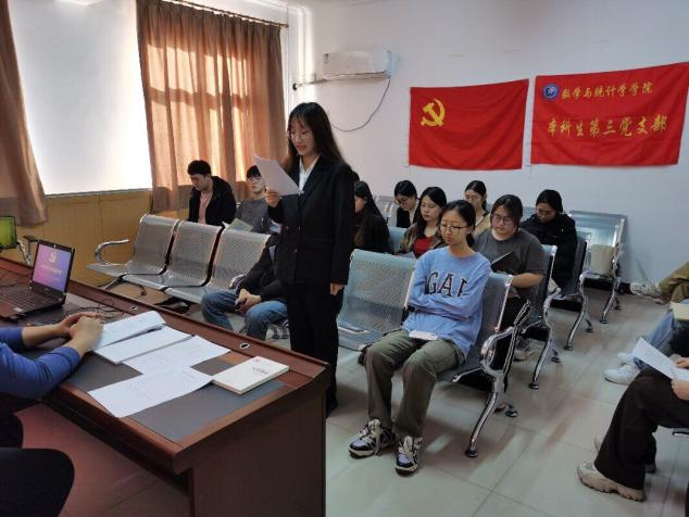 王洋首先带领本科三支部全体党员学习了习近平总书记在建党百年时的讲话,并希望青年党员们把爱党爱国爱民的朴素高尚情怀深深植根于心中,自觉坚持党的领导,听党话、感党恩、跟党走。同时,必须不断锤炼过硬本领、增长自身才干,拓宽思维视野、提高认知水平,积极探求科学真理、淬炼真知灼见,用实际行动践行胸怀天下的责任担当,为全面建设社会主义现代化国家贡献聪明才智,不辜负党和人民的信任、期望和重托,成为可堪大用、能担重任的栋梁之才。