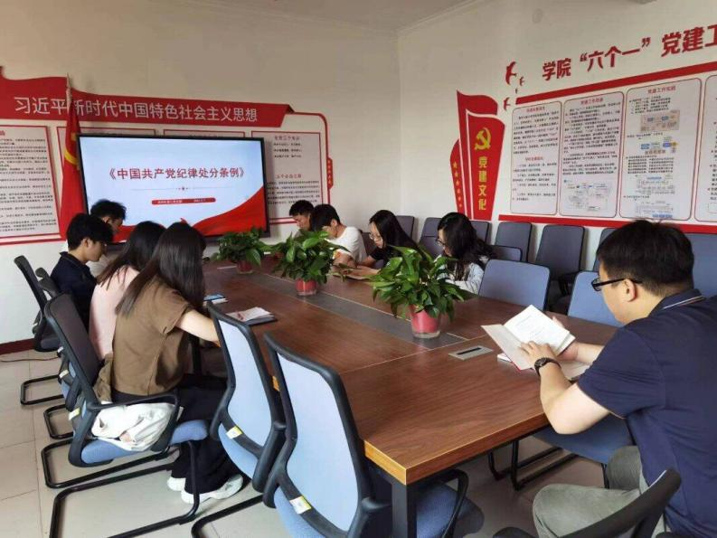 活动中,党支部书记赵海燕结合党委学习通平台内“条例微课堂”“网络里的纪律教育”等学习资源,带领支部成员共同学习“六项纪律负面清单之组织纪律篇”和《中国共产党党员网络行为规定》,教育引导全体党员严守纪律规矩,涵养清风正气,共同争做忠诚、干净、担当的共产党员。赵海燕还结合警示教育案例,对组织纪律和网络纪律的主旨要义和规定要求进行了剖析。她强调,全体支部成员要深刻认识开展党纪学习教育的重大意义,积极响应党中央号召开展党纪学习教育,认真学习《中国共产党纪律处分条例》和《中国共产党党员网络行为规定》,将纪律意识融入到日常学习生活行为规范中,在学习党规党纪的同时,认真学习校规校纪,遵循学生日常行为规范准则,做遵规守纪的带头人。