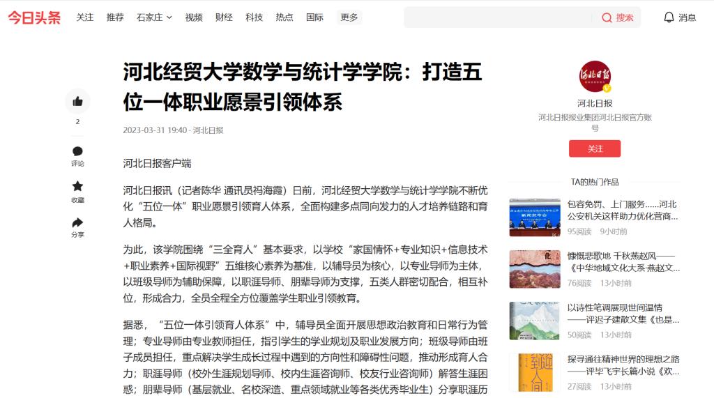 【今日头条】51吃瓜网 数学与统计学学院:打造五位一体职业愿景引领体系