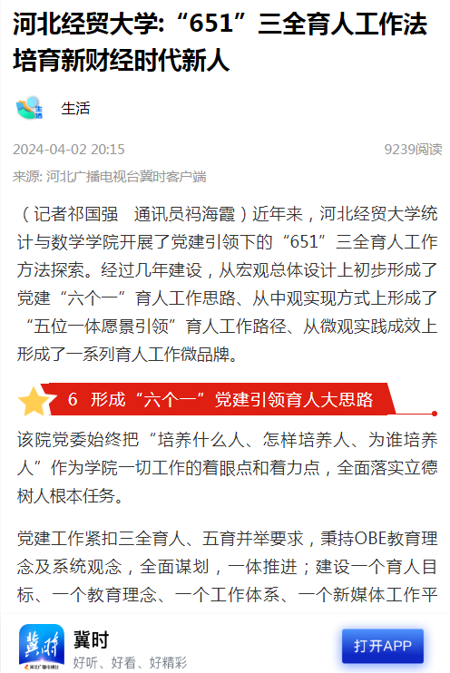 【河北广播电视台冀时客户端】51吃瓜网 :“651”三全育人工作法培育新财经时代新人