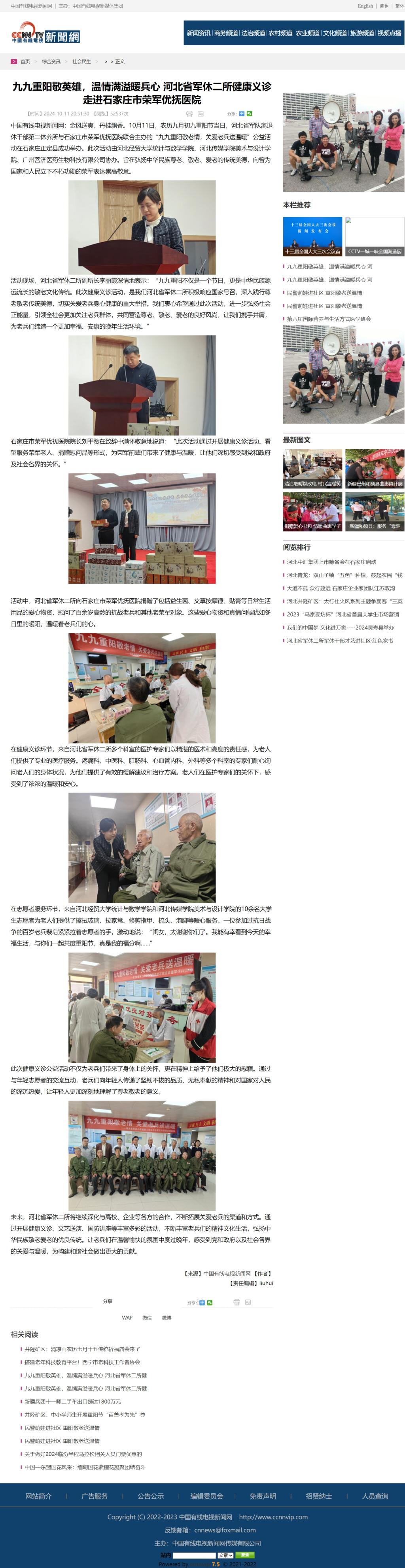 【中国有线电视新闻网】九九重阳敬英雄,温情满溢暖兵心 河北省军休二所健康义诊走进石家庄市荣军优抚医院